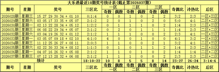 综上所述,大乐透第2026038期前区三区比看好3:1:1。